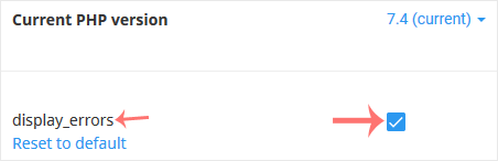 4. Display_errors'ı etkinleştirmek için işaretleyin. Devre dışı bırakmak için işareti kaldırın.