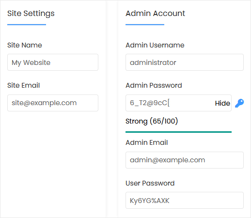 Note: Copy the admin username and password to Notepad. You will need those to access the admin area of your PHP-Fusion website later.