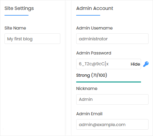 8. Under the Admin Account field, enter the following information:
