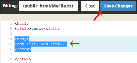6. Make changes to the file and then click on Save Changes.